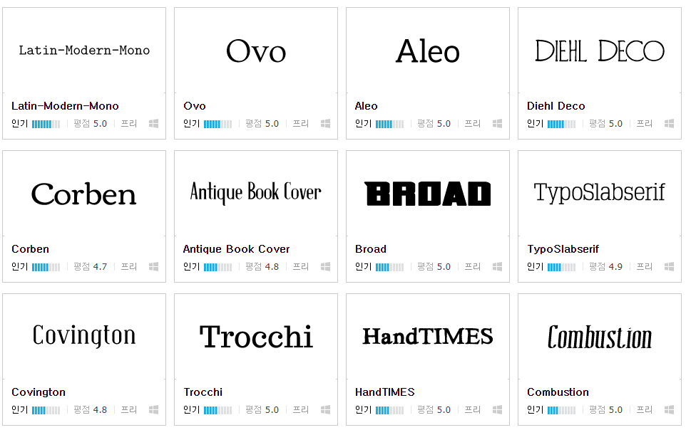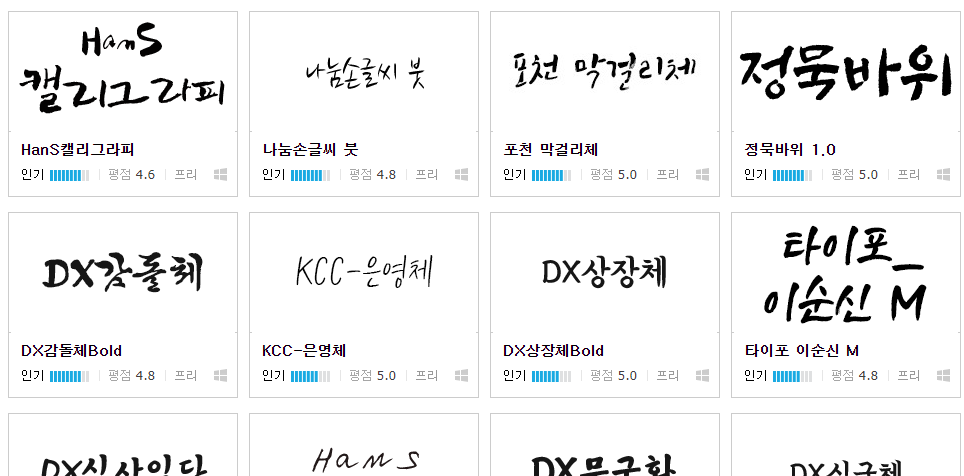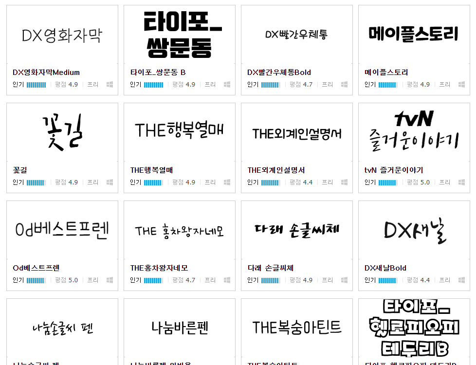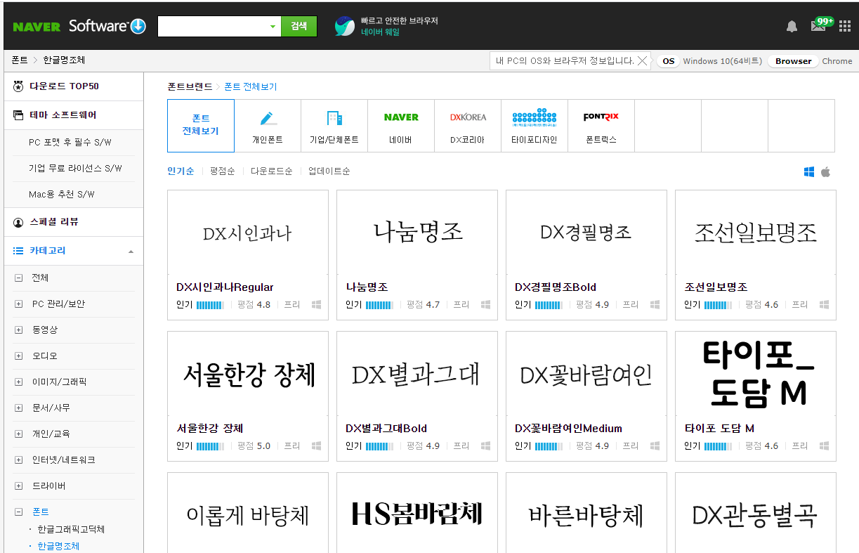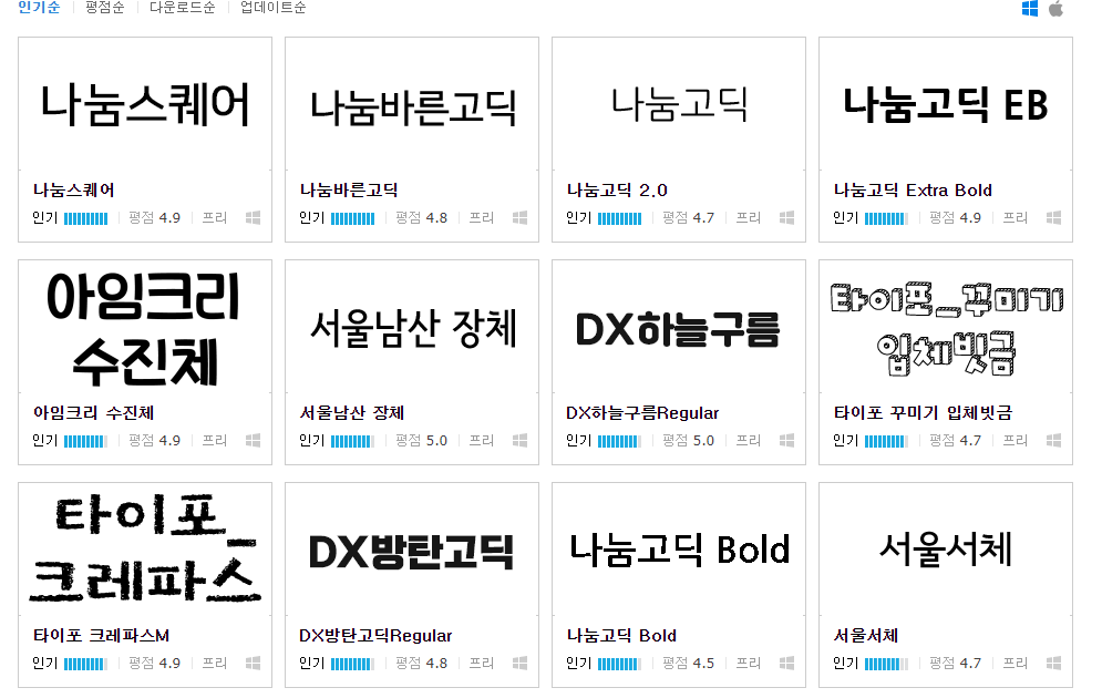 ▶ 네이버 소프트웨어 : 무료폰트 자세히 보기