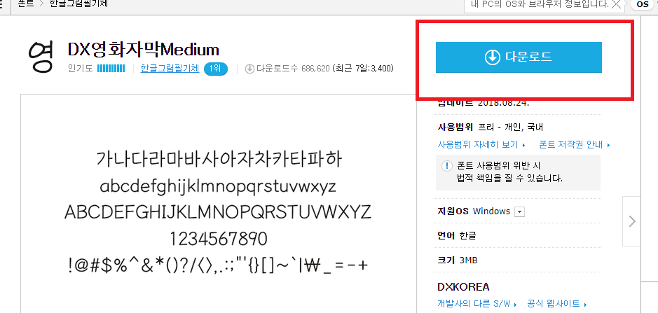 1. 원하는 폰트를 클릭 한 후 다운로드를 선택한다.