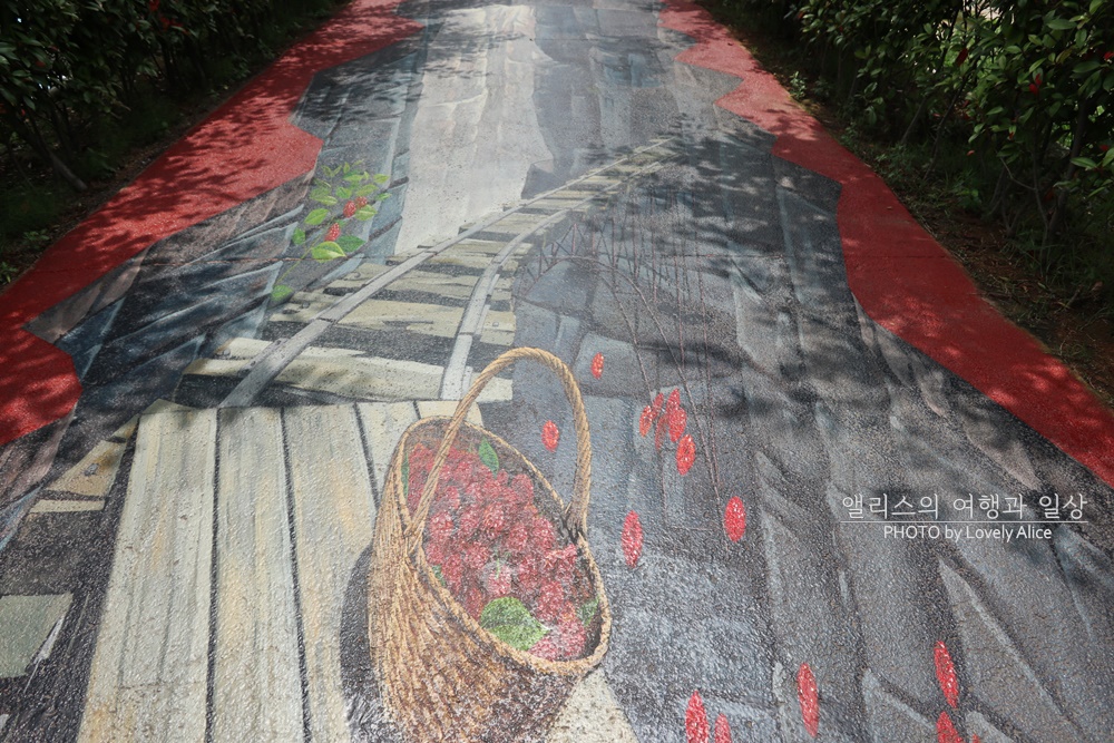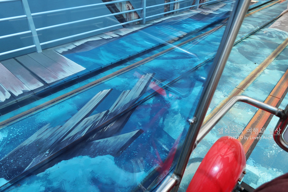 중간에 정차해서 내릴 순 없었지만 레일 바이크 아래에는 일부 구간에 트릭아트 존이 있었다.