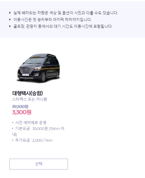 이 경우에는 최대 70% 할인해서 대형승합차를 예약해서 그날 택시투어를 할 수 있다. 기본 100km 기준으로 가고 싶은대로 편하게 갈 수 있는 것이다.
