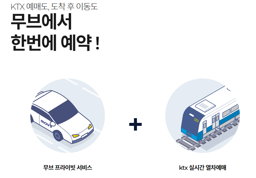 우연히 무브(movv)라는 서비스를 알게 되었다. 실시간으로 KTX 예매와 최종 목적지까지 이동을 연계하는 서비스인데, 일종의 통합교통플랫폼(MaaS) 구축으로 지방 관광 활성화 및 지역 렌터카/택시