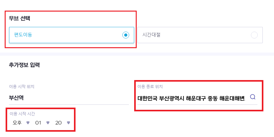 프라이빗 이동서비스, 무브 예약하는 방법