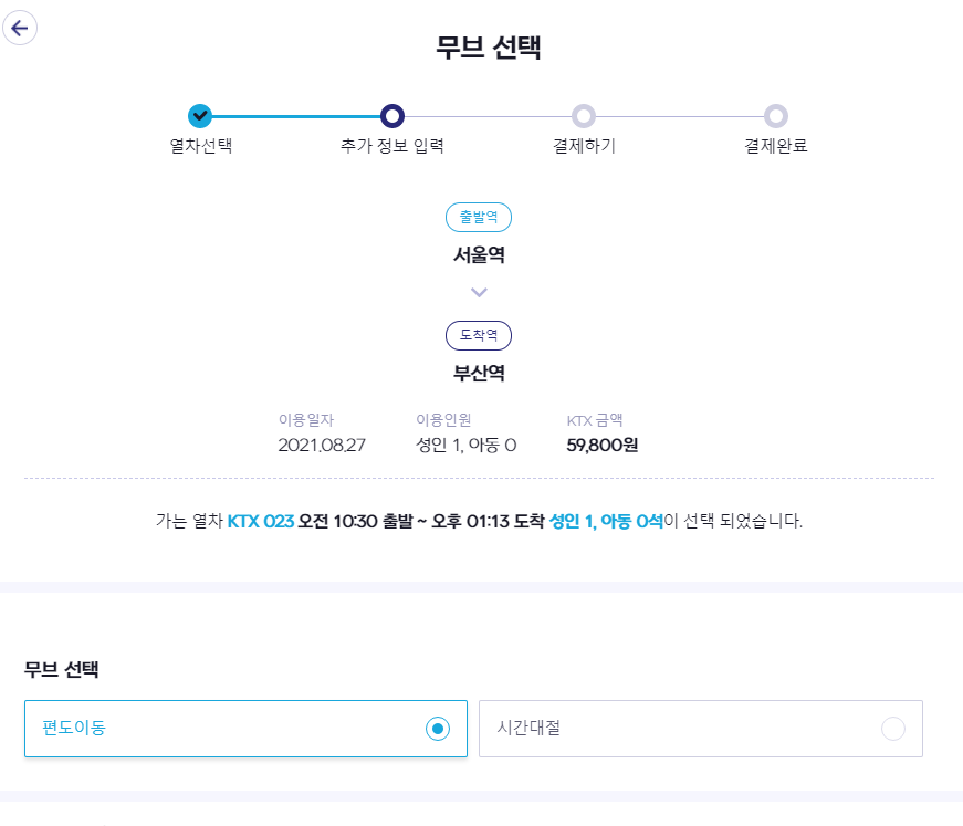 그렇다고 KTX 요금이 더 비싼 것도 아니었다. 레츠코레일에서 바로 예약해서 확인해봐도 이곳 무브에서 확인한 KTX 요금과 동일했다. 그럼에도 할이받아 택시 프라이빗 서비스까지 이용가능하다니. 이건 분명 놀라운 사실이었다!