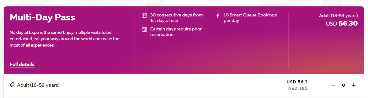 두바이 엑스포 2020 입장권 요금 자세히 보기