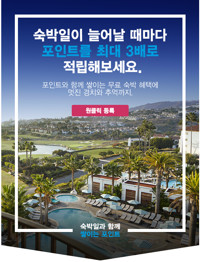 - 이벤트 이용방법: 여기 클릭 후 REGISTER를 클릭 후 호텔 체크아웃 시 자동 추가 포인트 적립