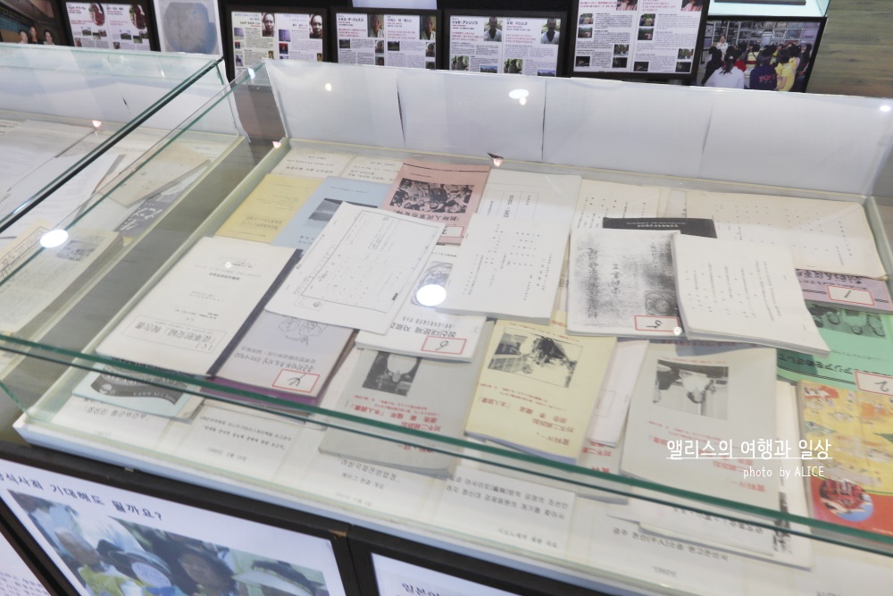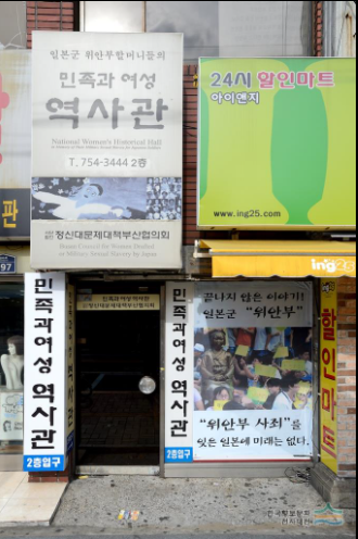 민족과 여성 역사관 외부는 이렇게 생겼다. 오래된 간판이지만 이마저도 교체하는 것이 쉽지 않은 이유는 역시나 운영비. 워낙 작은 문이지만 이 작은 문을 열고 계단을 따라 올라가면 많은 자료가 쌓여있는 작은 역사관을 만날 수 있다. 이곳이 절대 폐관되지 않고 대대손손 이어져 우리의 아픈 역사를 후손에게도 정확하게 전달되길 바라며!