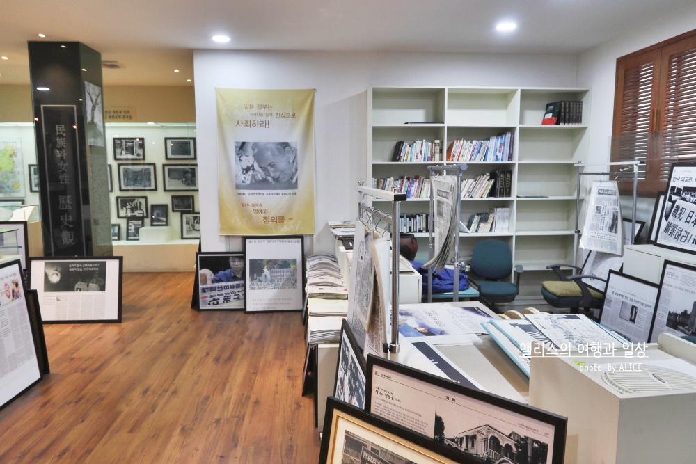 이곳은 일본 정부를 상대로 한 손해배상소송에서 최초로 승소판결을 받아낸 ‘(당시명칭)부산 종군위안부 여자근로정신대 공식사죄 등 청구소송’(일명 시모노세키 재판)을 이끈 김문숙 한국정신대문제대책부산협의회 이사장이 2004년 사재를 털어 조성한 시설이다. 그 규모는 겉보기와 달리 어마어마하게 많았다. 사실 겉 건물만 봐서는 간판조차 낡았고 규모도 작아보였기에 내부에 들어서면 엄청난 자료에 깜짝 놀랐었다.