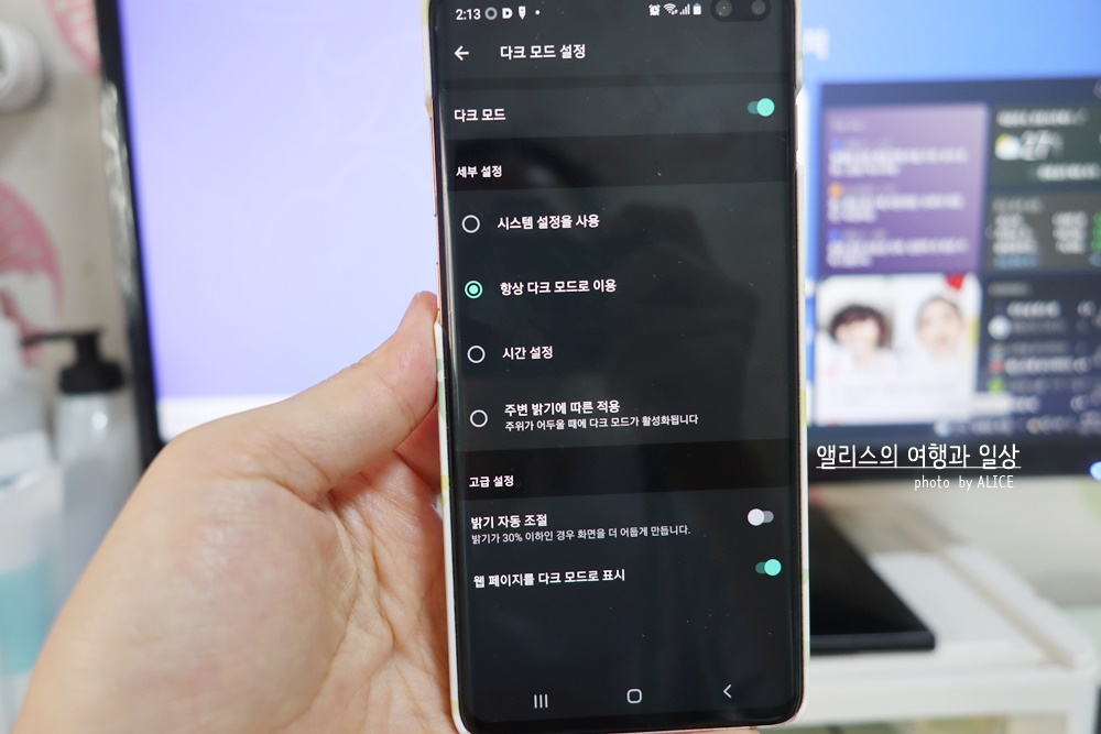 5. 핸드폰 내의 모바일에서 다크모드 설정 완료