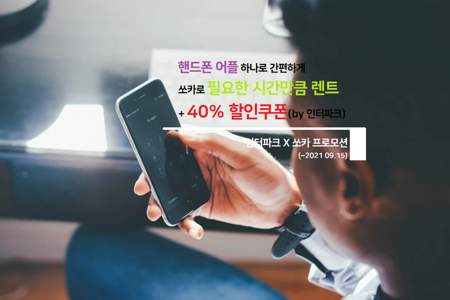 9월 15일까지 이용 가능한 쏘카 전용 40% 할인쿠폰을 인터파크에서 다운 받을 수 있다.