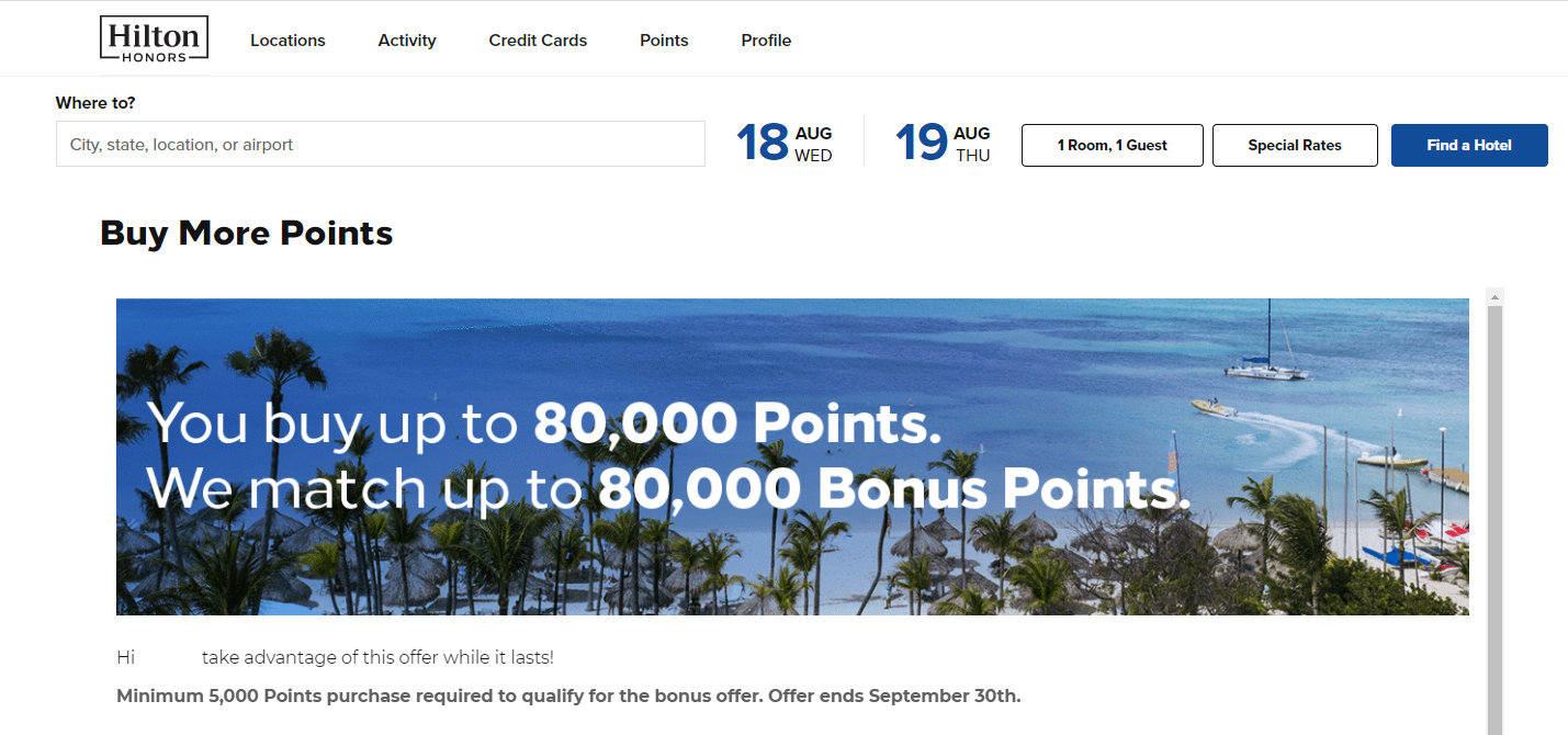 힐튼은 더블 보너스 프로모션을 자주 하는 편이라, 힐튼을 자주 이용하는 분이라면 이럴 때 포인트를 구매해두는 것도 좋을 것 같다.