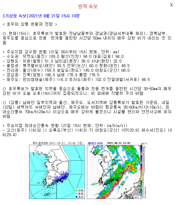 ▶ 2021.08.21 YTN 뉴스: "이 시각 경남 비 상황...창원·통영 등 4곳 호우 경보" (약 오후 12~1시쯤)