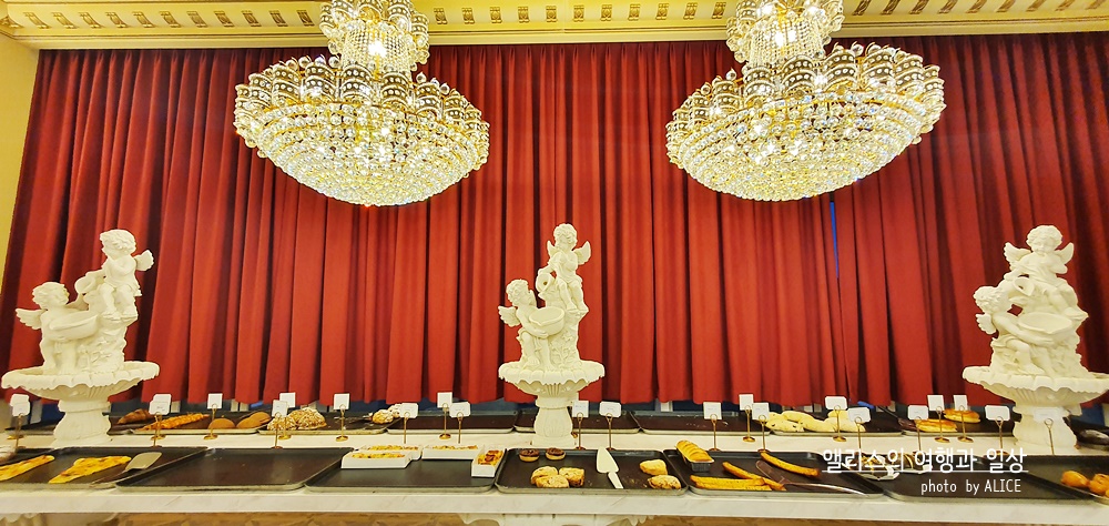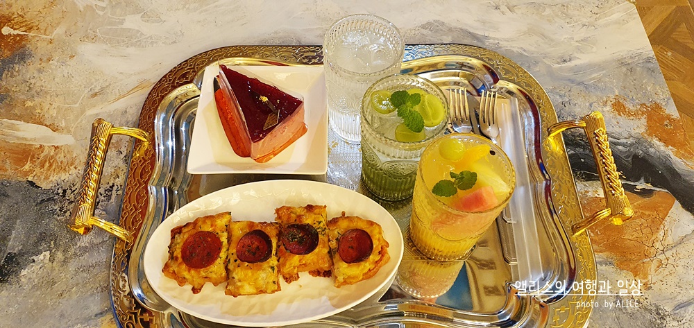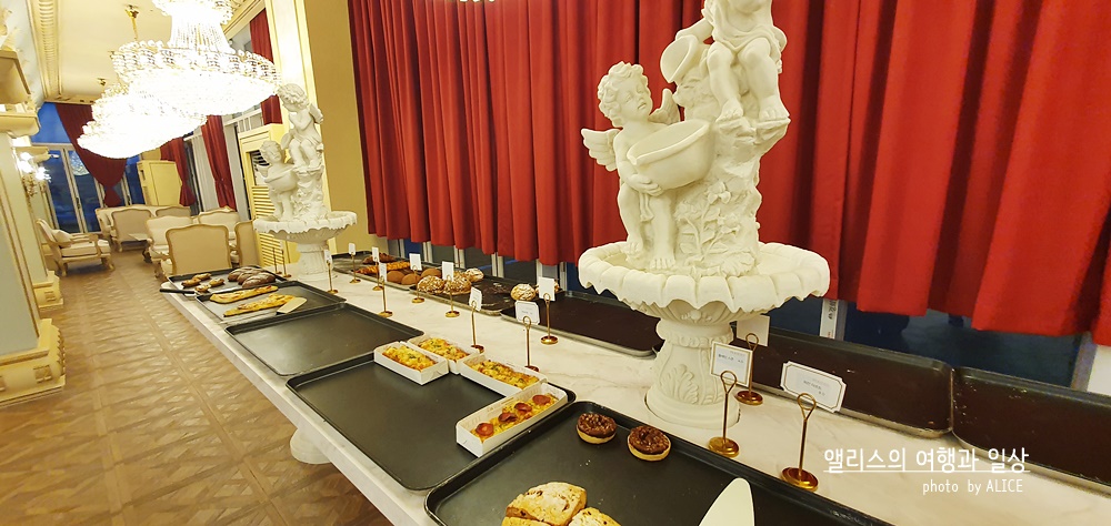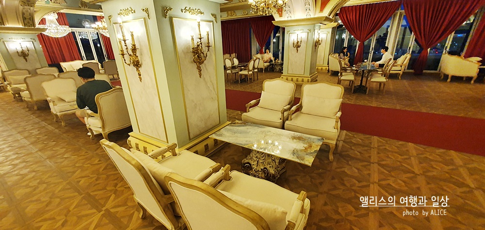 이렇게 화려한 궁전 스타일의 페리데스 하이엔드 카페를 볼 수 있다. 이 화려함은 카페에서 만나는 것은 세상 처음이라 슬쩍 적응이 안되었달까. 뭐 그 덕분에 요즘 시기에 따닥따닥 사람들과 붙어있지 않고 여유로운 공간에서 카페의 메뉴를 즐길 수 있다는 점은 상당한 장점이었다.