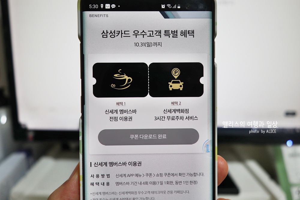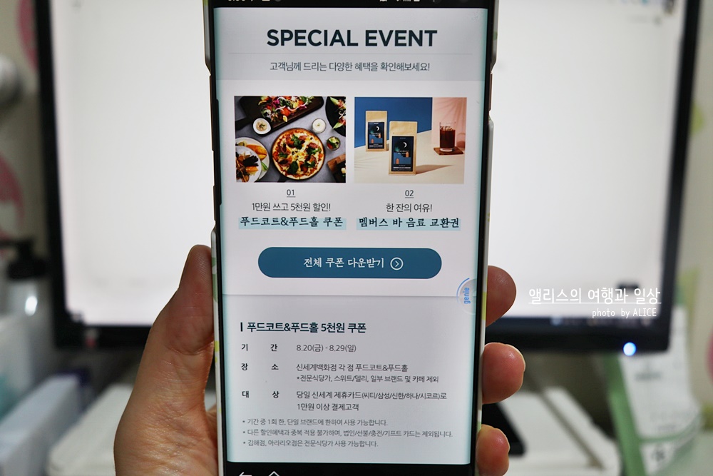 아래 쿠폰을 모두 다운받으려면 신세계백화점 어플을 미리 다운로드 후 회원가입이 되어있어야 한다.