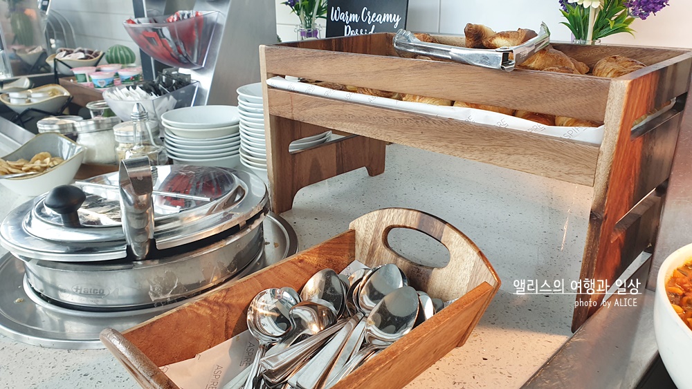 스프가 있는 코너에 데니쉬 롤이나 크로와상이 있었는데, 이게 가장 맛있을줄이야! 다른 메뉴 덕분(?)인지 모르겠지만 나는 정말 맛있게 이곳에서 빵을 먹었다. ^^; 메뉴는 제공된 것이 다 떨어지면 동일한 메뉴를 채우기보다는 아예 새로운 메뉴가 제공되었다. 그렇게 메뉴는 지속적으로 로테이션 되는 것 같았다.