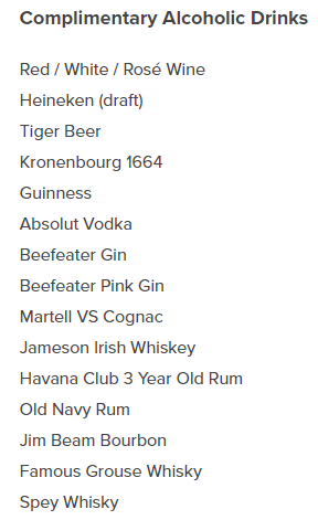 클럽 아스파이어 라운지 제공 리프레시먼트