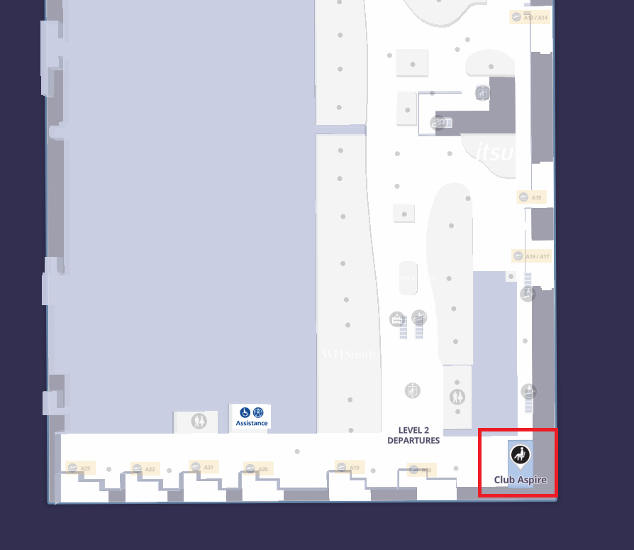 - 위치: 히드로공항 T5 Gate A18 인근, 보안 검색대 통과 후, Level 2 공항지도보기