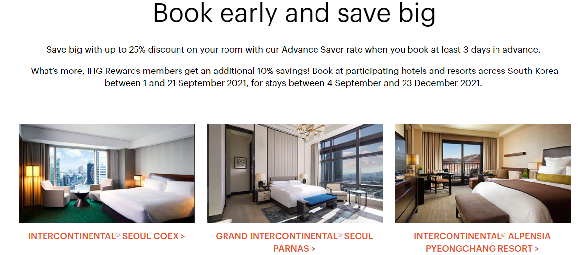 · IHG 어드밴스 세이버: 한국 호텔 객실최대 33% 할인