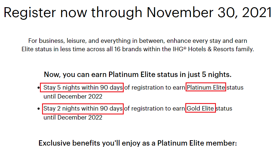 IHG 멤버십, 플래티늄, 골드 패스트트랙