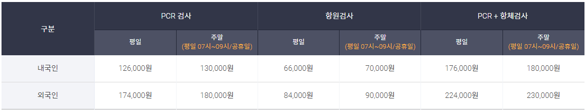 건강보험 소지 외국인은 내국인과 동일한 가격으로 적용되며 인천공항 코로나19 검사센터 3개소(T1 2개소, T2 1개소) 모두 동일 비용으로 운영된다.