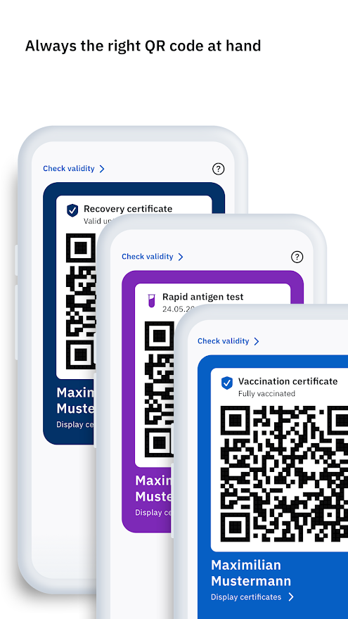 · 디지털 예방 접종 카드란 무엇인가? 디지털 증명서에는 개인의 이름과 생년월일 외에도 예방 접종 시간과 백신에 대한 정보가 포함되어 있다. 약국은 신분증과 노란색 예방접종 증명서에서 이 데이터를 가져와 시스템에 입력한다. 그러면 예방접종 증명서가 QR 코드 형태로 발급된다. 이 QR 코드를 스캔해서 디지털화 하면 예방접종 종이 증명서를 잃는다 하더라도 언제든지 접속하여 제시 가능하다.