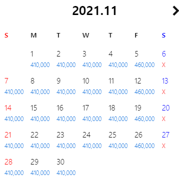 파라스파라 리조트 서울 객실 정보, 객실요금
