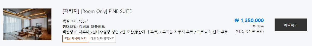 - 객실요금: 1,125,000원 ~ 1,350,000원