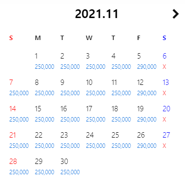 파라스파라 리조트 서울 객실 정보, 객실요금