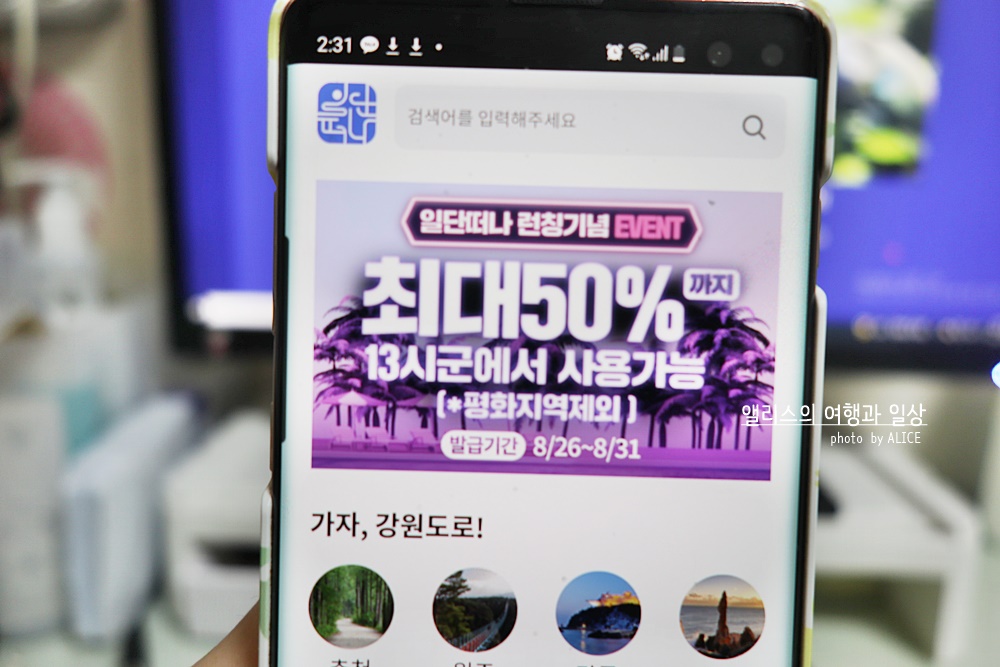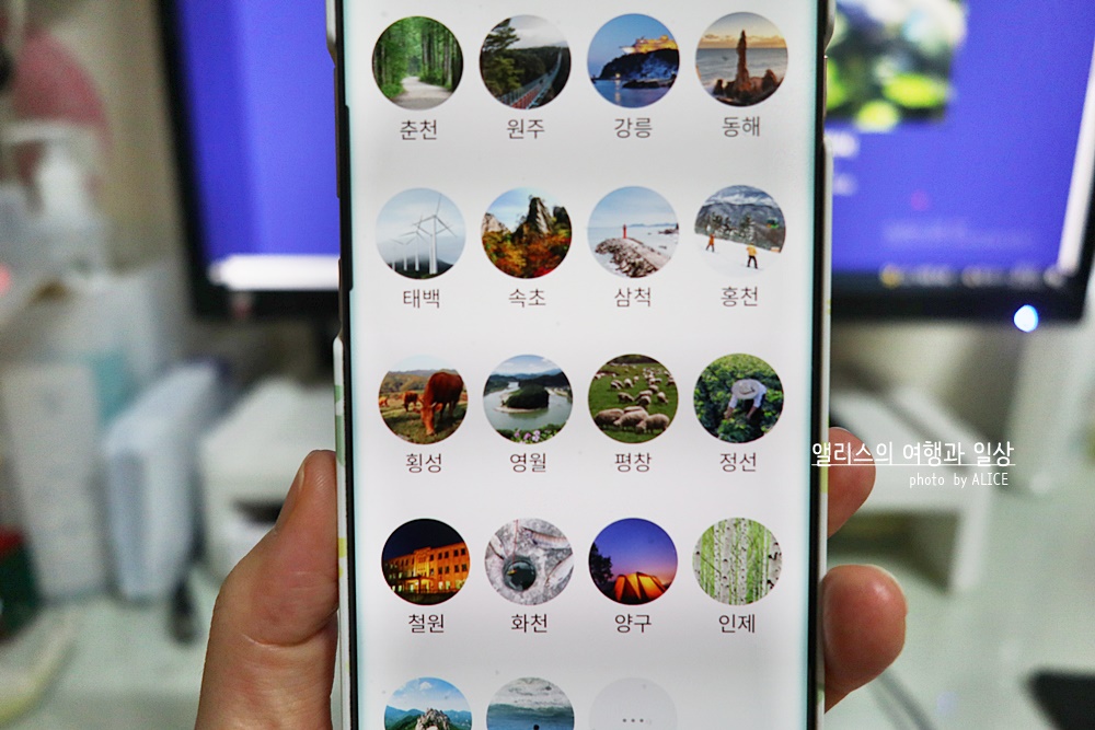 일단떠나 어플에서는 강원도 내의 지역을 세분화하여 선택할 수 있다.