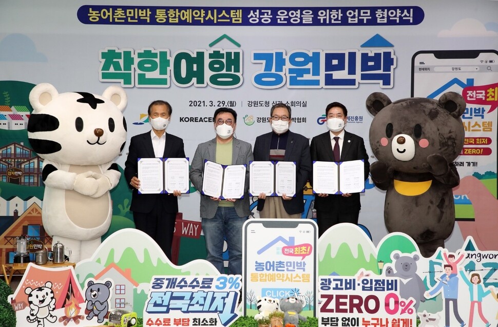 중개수수료는 3%로 전국에서 가장 최저다. (우리에게 잘 알려진 숙박 중개업체의 평균 수수료가 10~15% 저옫) 광고비도 입점비도 없으니 숙박운영하는 도내 영세 농어촌민박업체들에게는 부담을 줄이고, 강원도 입장에서는 많은 숙박업자에게 희망을, 관광하는 이들에게는 부담없는 객실료를 제공할 수 있는 기회가 된다. 강원도가 이를 통해 홍보가 된다는 사실은 쉽게 예측가능한 대단한 장점이면서!
