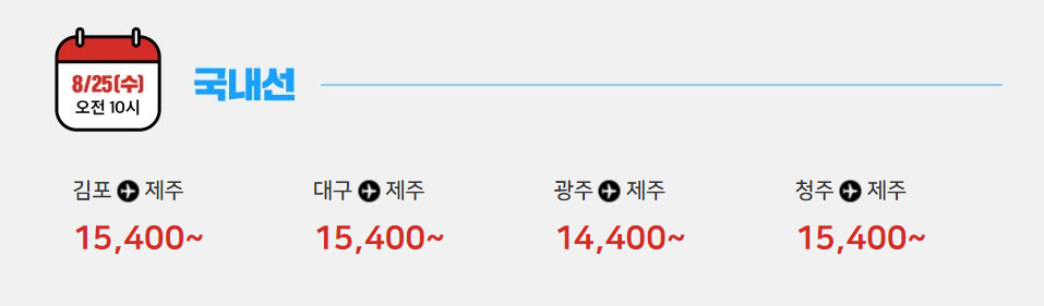 08월 25일 오전 10시 국내선 오픈