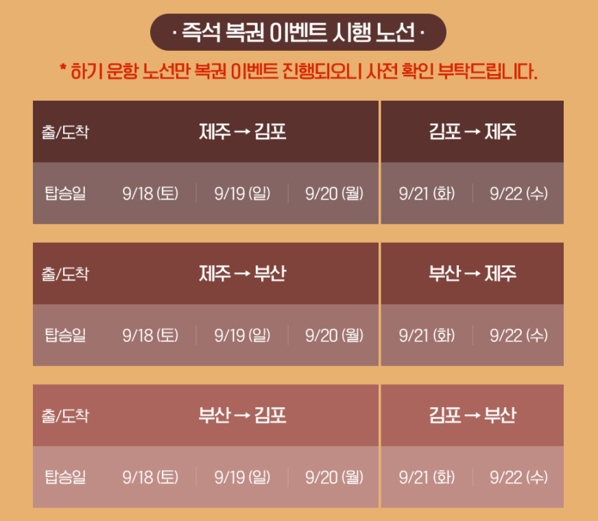 ① 제주-김포, 제주-부산, 부산-김포 노선: 2021년 9월 18일 ~ 20일