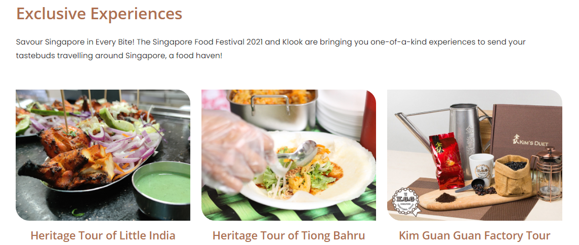 리틀 인디아의 유산 투어나, Kok Fah Technology Farm과 함께하는 수경재배 온실 농업, 워킹 투어를 통해서 현지 디저트를 집으로 가져가는 기회까지! 2021 싱가포르 푸드 페스티발은 현지에서도 다양한 이벤트가 진행중에 있다. 싱가포르에서만 경험할 수 있는 기회가 준비되어있다니! 지금 싱가포르 여행을 하지 못하는 것이 안타까울따름!