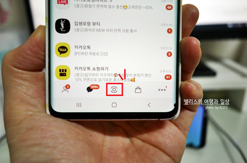 2. 카카오 목록 하단에 정중앙에 있는 둥근 원을 터치한다.