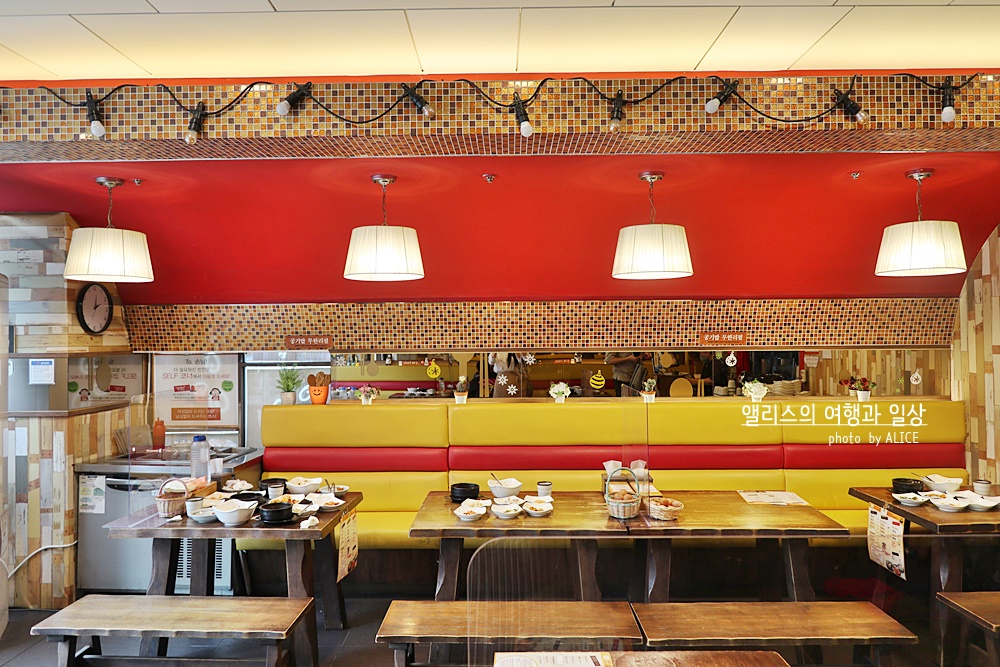 김치, 콩나물, 무생채, 김가루 등 기본 반찬 중 일부는 따로 셀프코너가 있어서 원하는 만큼 퍼갈 수 있다. 여기에 공기밥 역시 원하는 만큼 펄 수 있는데, 밥솥은 계산대 근처에 있다. 밥 많이 퍼가도 절대 눈치 안주심!
