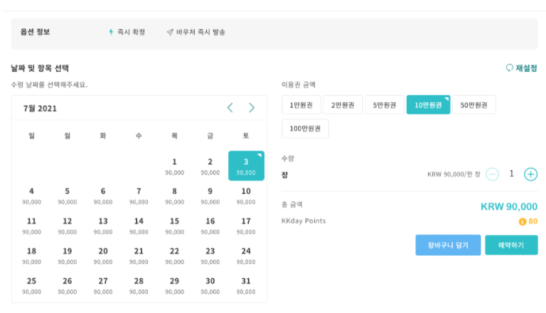 1. 할인코드 적용 가능한 제휴링크 클릭 후 원하는 날짜와 금액을 선택하여 예약하기 버튼 누르기