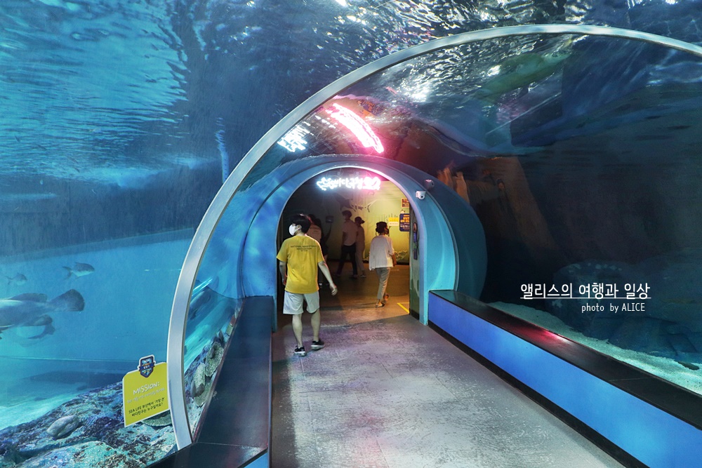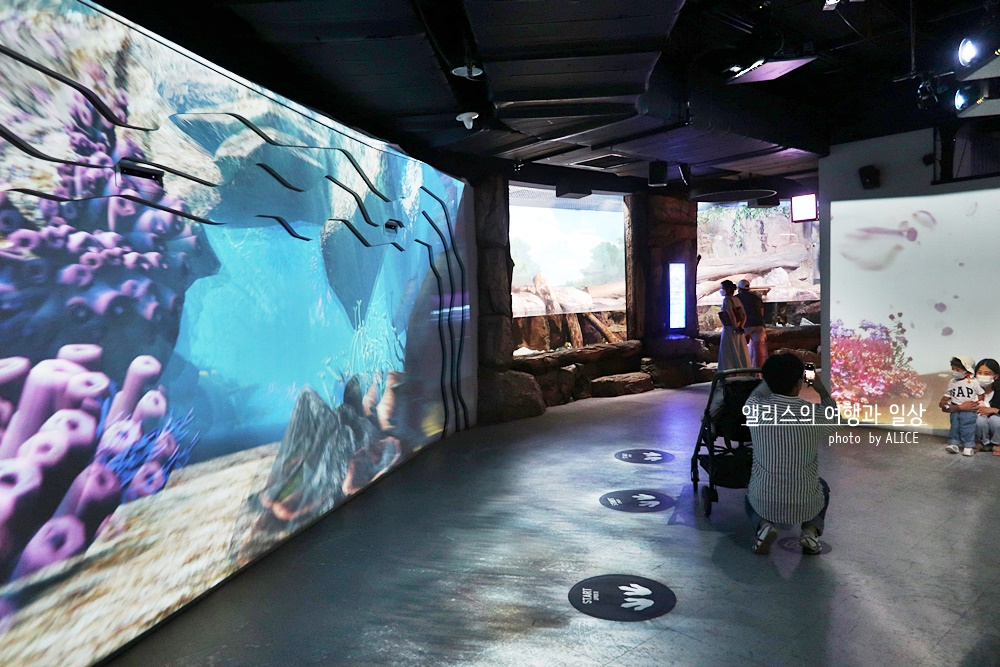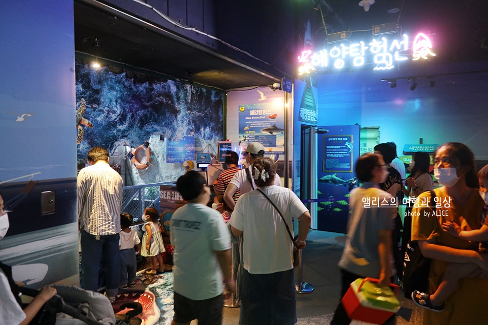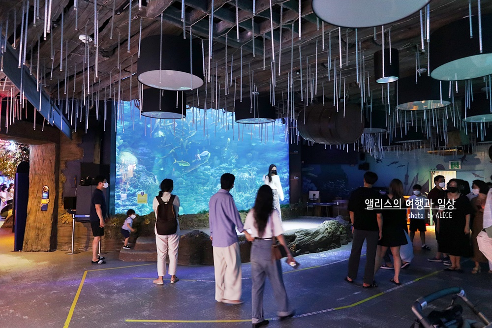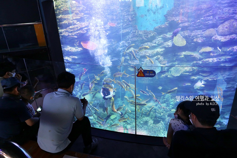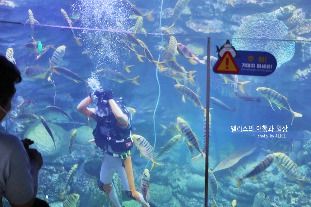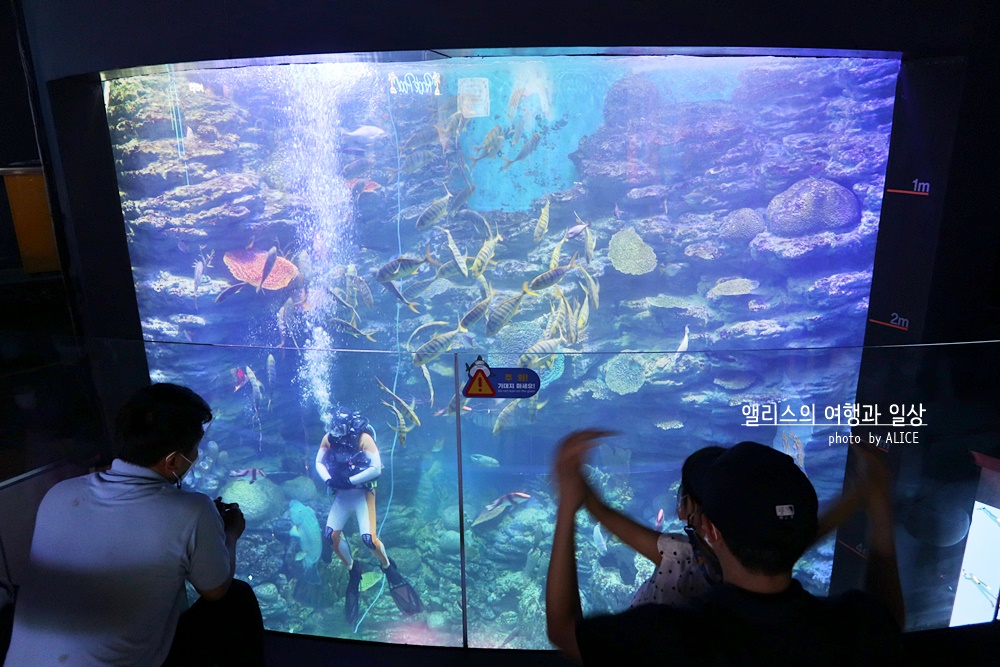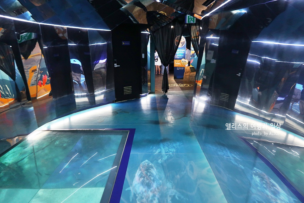 상어 투명보트를 타고 3,000톤의 메인수조를 10~15분간 상어와 다양한 해양생물들을 가까이에서 볼 수 있는 체험이 가능한 공간이다. 가이드의 다양한 설명을 통해 물고기들의 재미난 세계도 배우고, 보트 위에서 메인 수조에 살고 있는 물고기들에게 직접 먹이도 줄 수 있는 “국내 유일”의 체험시설이라 정말 재미있다. 나 역시 직접 참여한 적이 있는데, 실제 상어를 가까이에서 볼 수 있다는 점, 한 공간에 다양한 생물체가 어떻게 지내고 있는지 수족관 뒷 이야기까지 들을 수 있어서 즐거웠다.