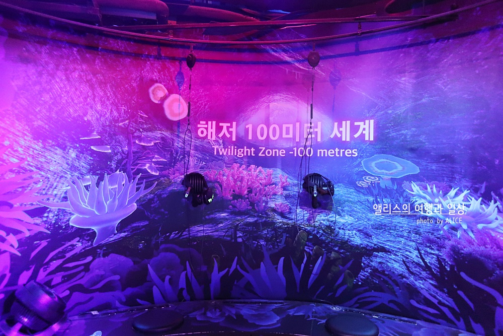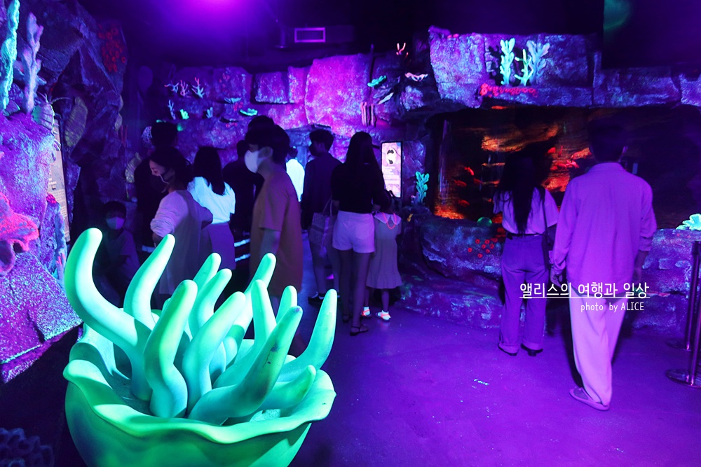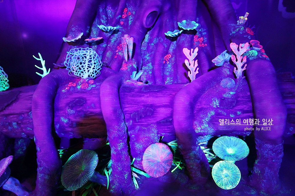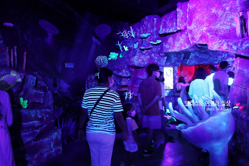 형광빛 가득한 이곳은 심해를 표현한 공간이다. 심해는 빛이 들지 않지만 해양생물 스스로 빛을 내는 (미약하지만 그들은 꽤나 다양한 빛을 낸다.) 해양생물들을 볼 수 있다.