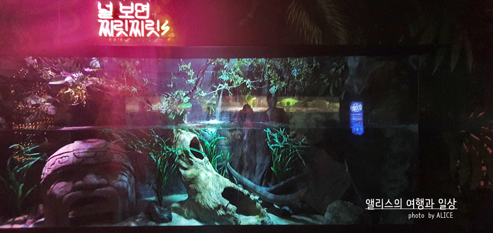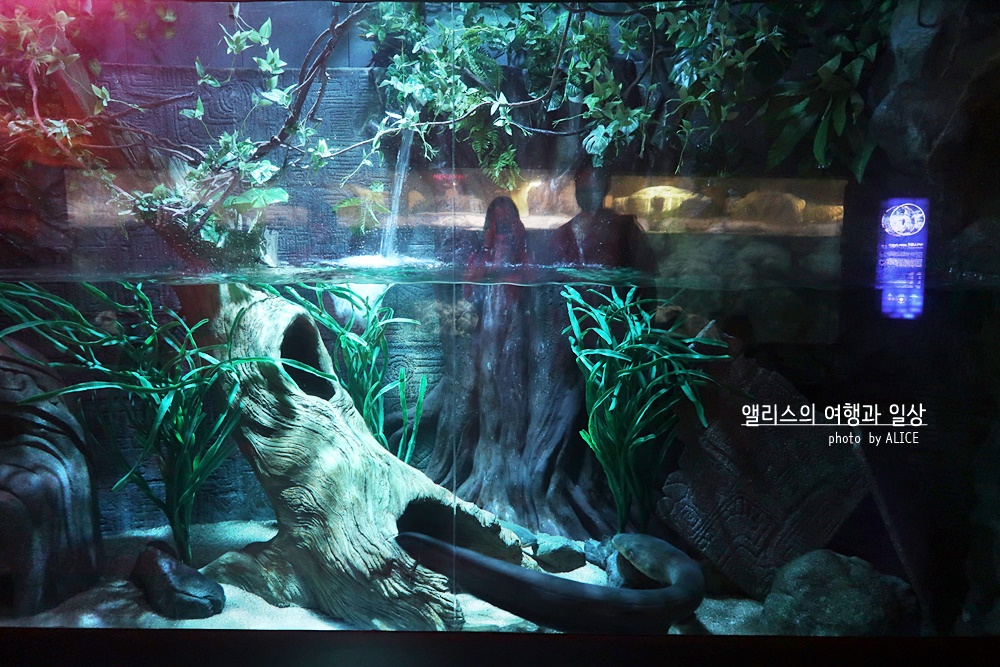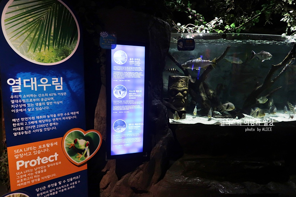 항상 입구에 있는, 시작점을 알리는 열대우림 존. 열대우림에 서식하는 해양생물들을 볼 수 있다.