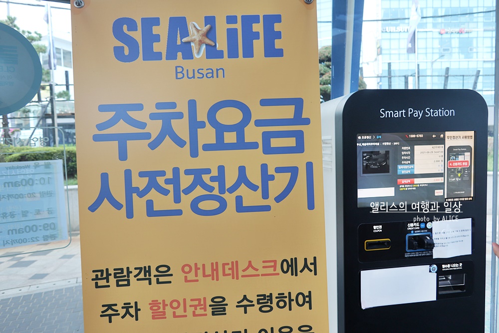 모든 관람을 끝내고 주차했을 경우 입장시 받았던 할인권을 이용해서 주차요금 사전정산이 가능하다. 주차요금은 10분당 1천원... 할인권은 1천원만 감면 가능하다. 아무래도 주차공간이 협소한 해운대 특성인지도 모르겠다. 그러므로 이 부분 꼭 참고하시길. 주차를 했다 하더라도 1천원 할인권만 받을 수 있다는 점!