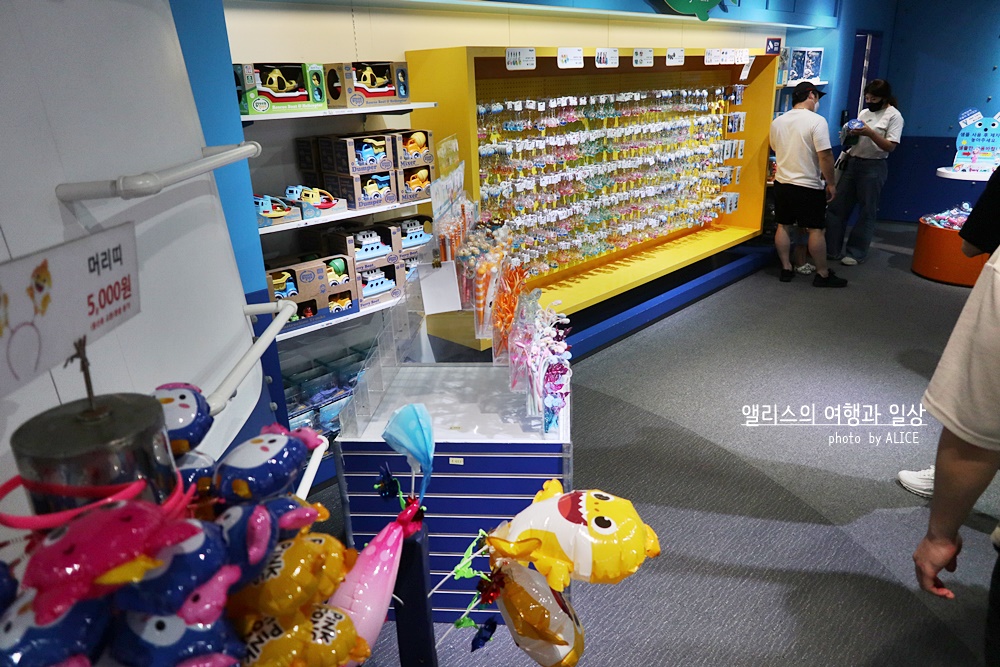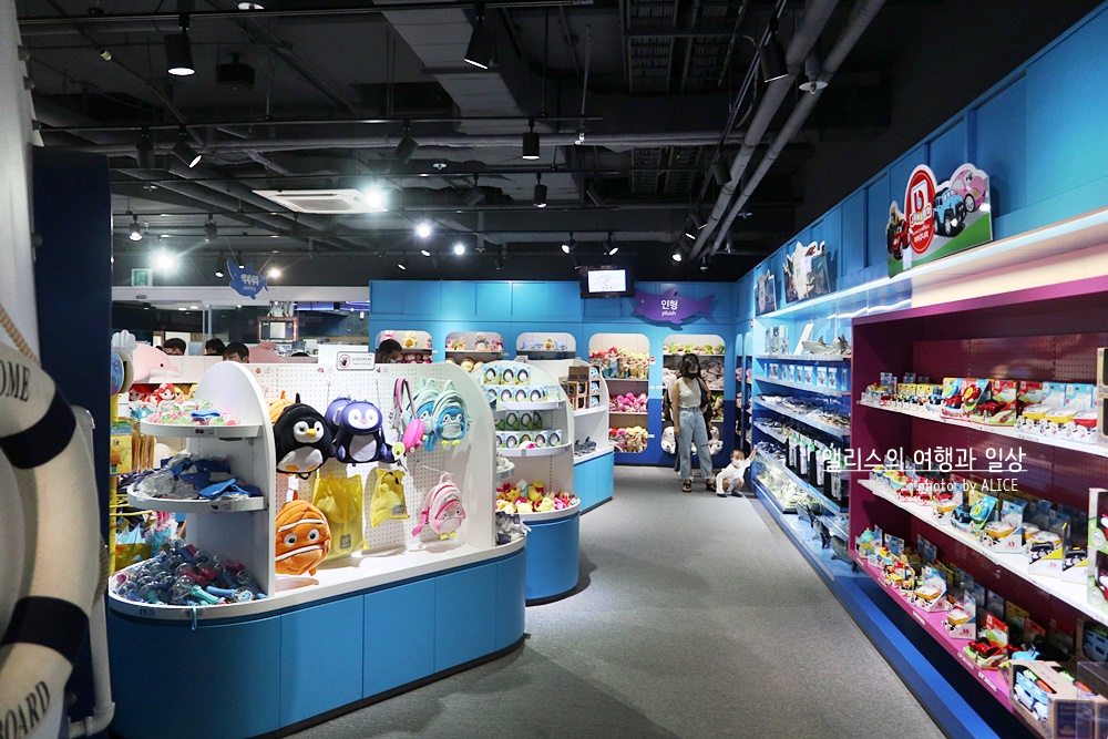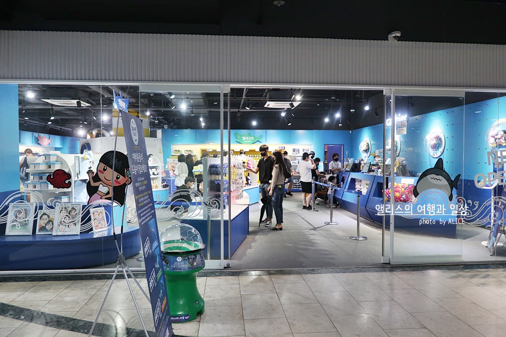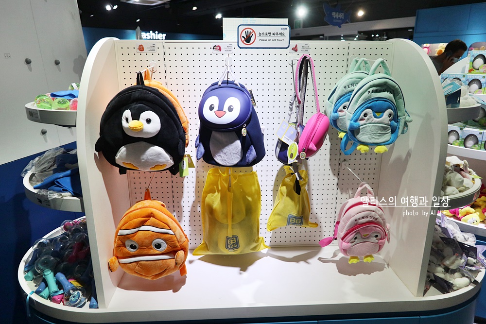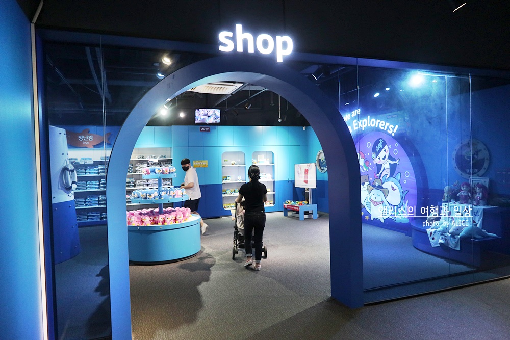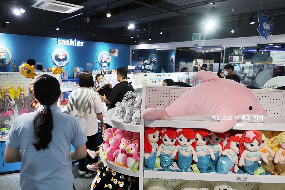 어느 아쿠아리움이 그러하듯이, 기념품 가게에 반드시 뭔가 사지 않아도 없으면 아쉽다. 항상 마지막 코너에 이는 기념품 가게에서 둘러보면서 아이쇼핑해도 좋다. 다만 아쉬운 것은 아쿠아리움 캐릭터를 잘 살린 학용품이 조금 더 다양하고 일생상활에서도 유용하게 사용할 수 있는 물품이 있으면 좋겠다.
