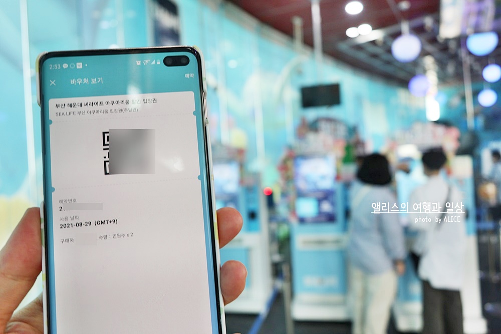 사전에 온라인으로 예매했다면 왼쪽으로, 현장구매를 할 예정이거나 부산 아쿠아리움 공식 홈페이지에서 할인예약했다면 오른쪽으로 이동하면 된다. 왼쪽에는 무인발권기가 있고 오른쪽에는 사람이 상주하는 카운터가 있다. 그냥 사람 많을 때 참고하면 되고 사람이 많이 없다면 주로 오른쪽에서 바로 확인 후 입장 가능하다.