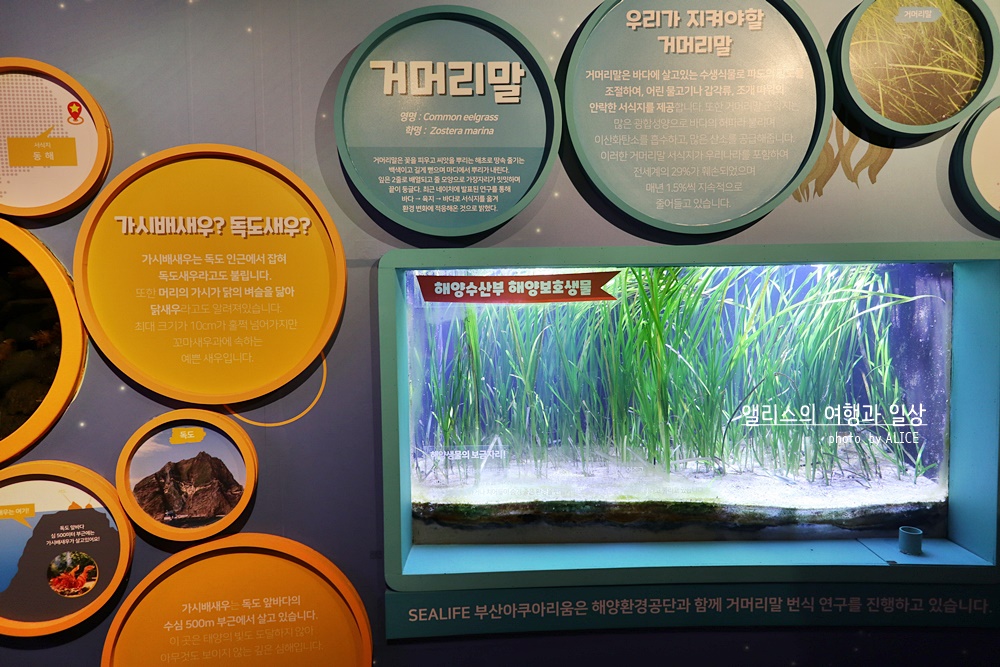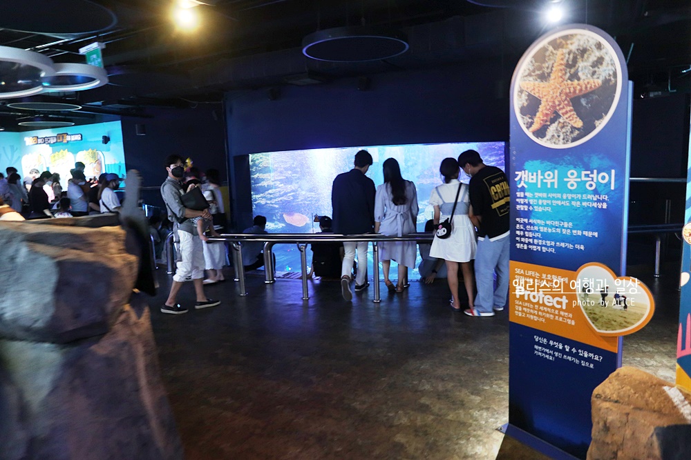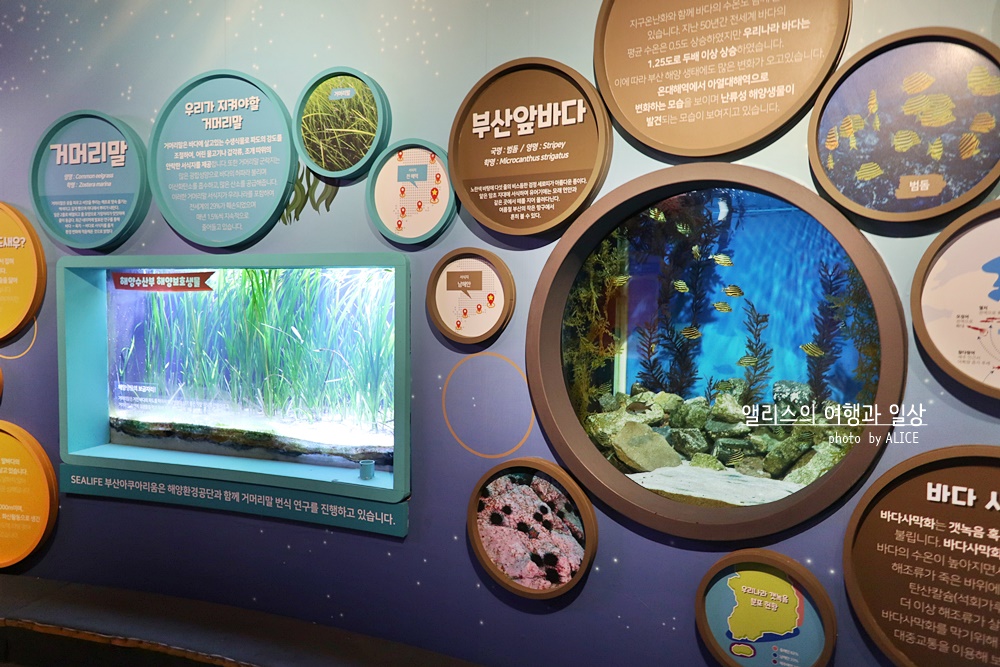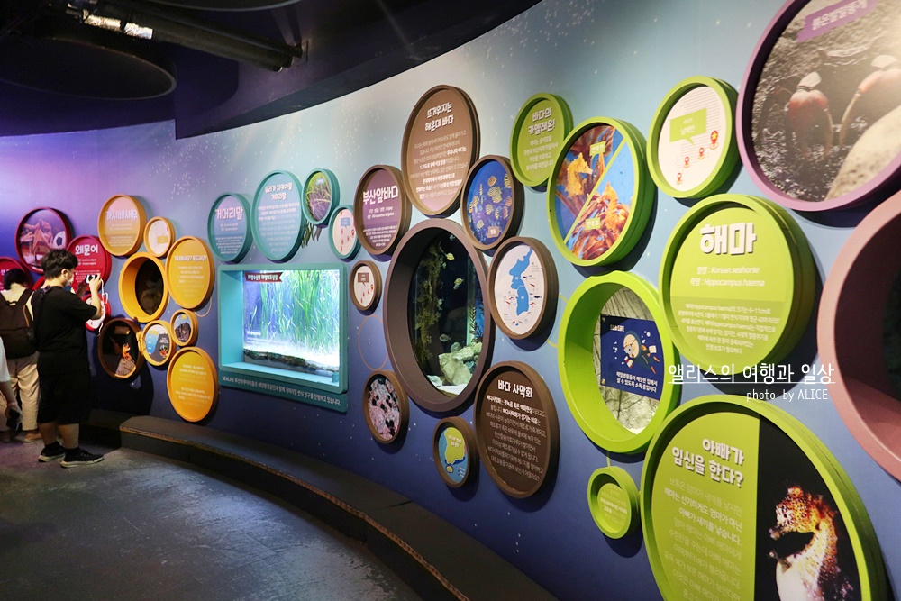 가오리, 해마등을 볼 수 있는 이 공간은, 우리가 지켜야 할 해양생물, 수중생물에 대한 소개를 하고 있다. 우리 삶 주변에는 어떤 수중생물이 있고, 우리가 살고 있는 부산에서 가장 흔한 익숙한 수중환경은 어떤지, 그곳에서 어떤 생물이 어떨게 살아가는지 이렇게 익숙한 소재를 꼼꼼하게 설명하고 있다.