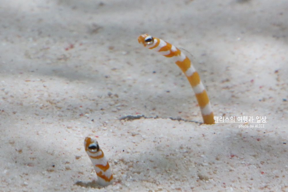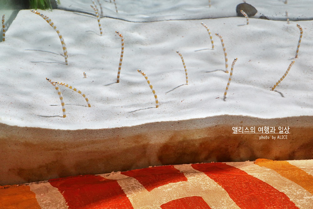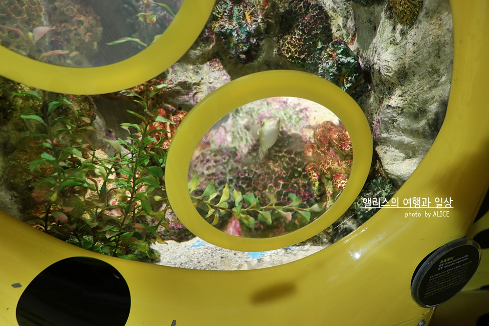 흑백의 물방울 무늬가 조화를 이루는 가오리 ‘블랙다이아몬드가오리’를 시작으로, 노란 바탕에 검은 점의 대비로 포식자에게 경고하는 ‘옐로박스복어’, 흰색과 주황색의 가로줄 무늬가 돋보이는 장어 ‘가든일’, 사자의 갈퀴를 떠올리게 화려한 지느러미에 따끔한 독을 품고 있는 ‘쏠배감펭’ 등을 볼 수 있다. 단, 쏠배감펭음 모든 전시 끝에 마지막 장소에 있으니 이 부분 참고하시길!