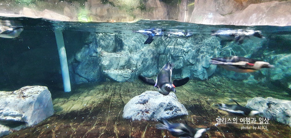 평소에 가면 잠자느라 못 보는 편인데, (내가 시간을 못 맞춘 것일지도 모른다.) 이날따라 자카스 펭귄들이 신나게 물놀이를 하고 있었다. 그러다보니 자연스레 많은 이들의 시선을 잡아끌고 있었다.