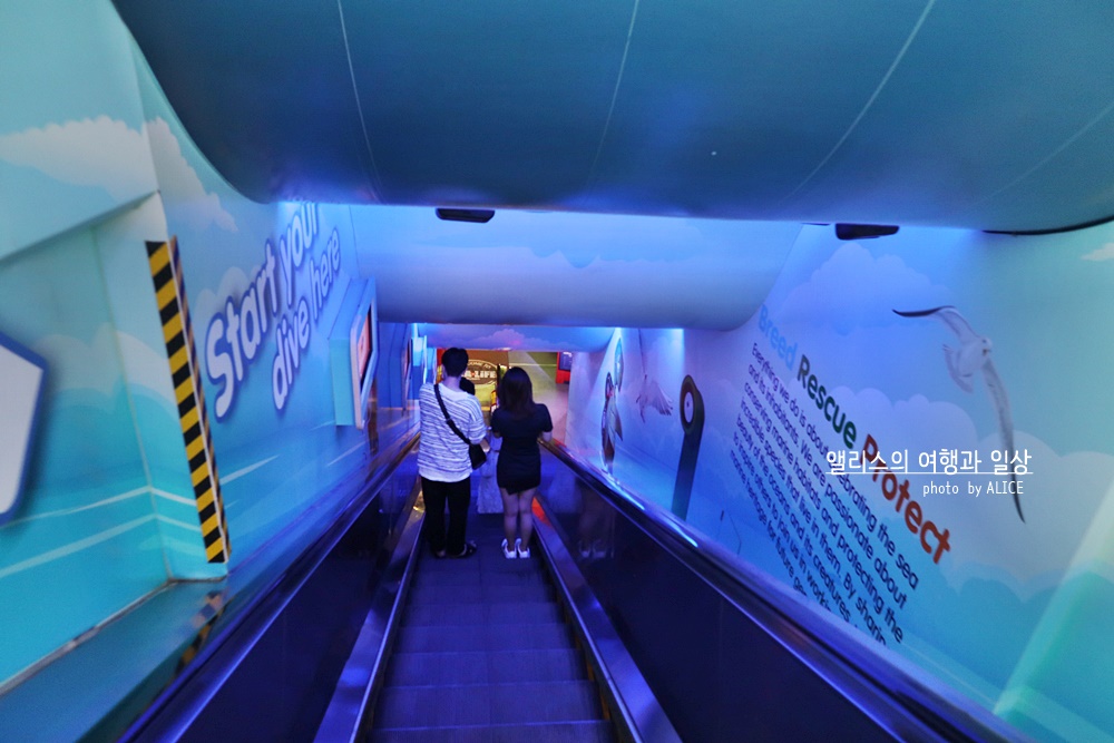 길죽한 에스컬레이터를 타고 내려가면 아쿠아리움은 시작된다. 이때 미리 화장실을 다녀오시길 추천한다.