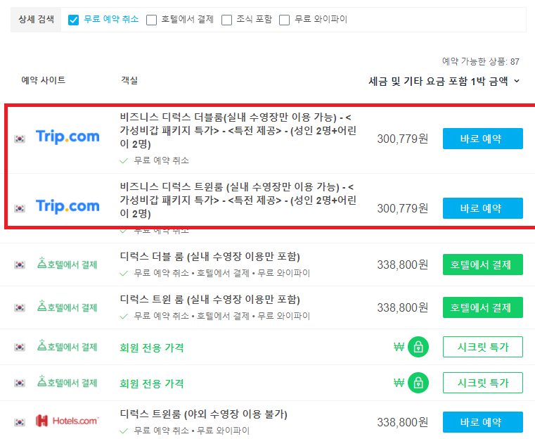 그저께 가격 확인이랑, 어제 가격 확인이랑, 그리고 지금 글 쓰는 시점에서 가격 확인을 해봐도 최저가 가격이 빠른 속도로 소진되고 있다. 지금이라도 이 글을 본다면 가능한 빨리 예약잡길 추천한다.