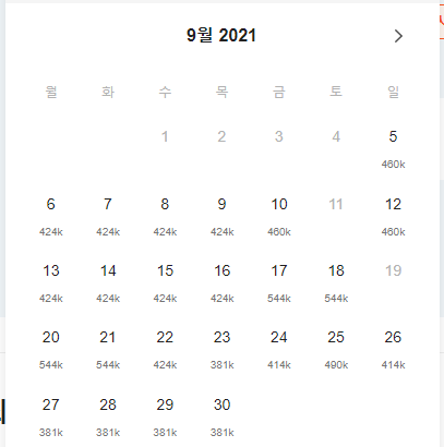 - 얼리버드프로모션 날짜별 객실요금 확인하기