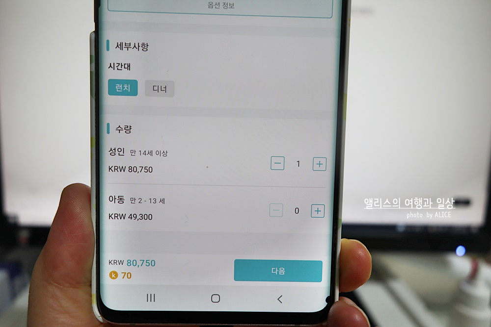 4인 가족의 경우 런치 기준으로 32,900원을 할인 받을 수 있다. 할인율이 상당히 좋고 추가 할인쿠폰까지 있으니 여러모로 이득인 셈. (여기에 추가로 kkday 포인트를 적립받을 수 있다.)