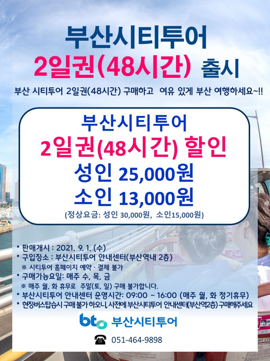 부산시티투어 2일(48시간) 이용권을 9월부터 특별 할인 판매 시작!