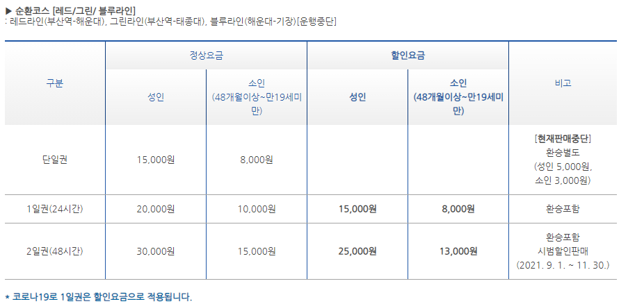 부산시티투어 요금 안내